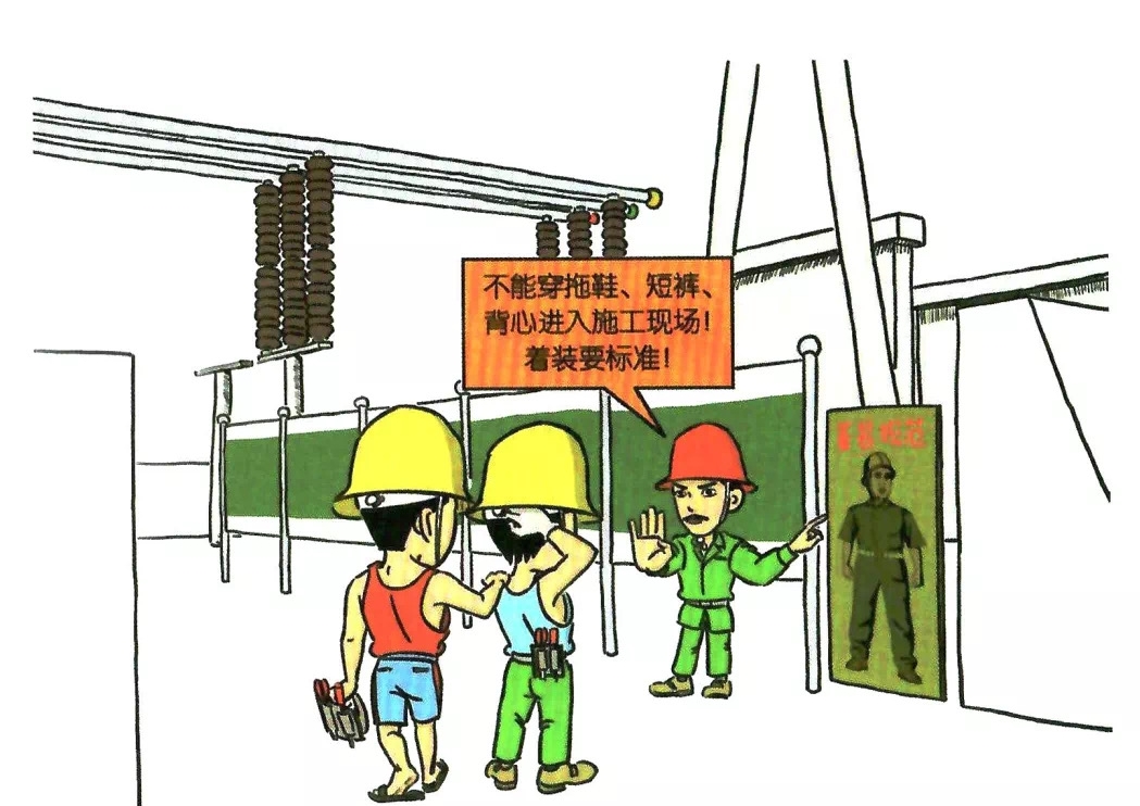 3.穿高跟鞋、凉鞋、拖鞋及裙子、短裤、背心进入施工场地