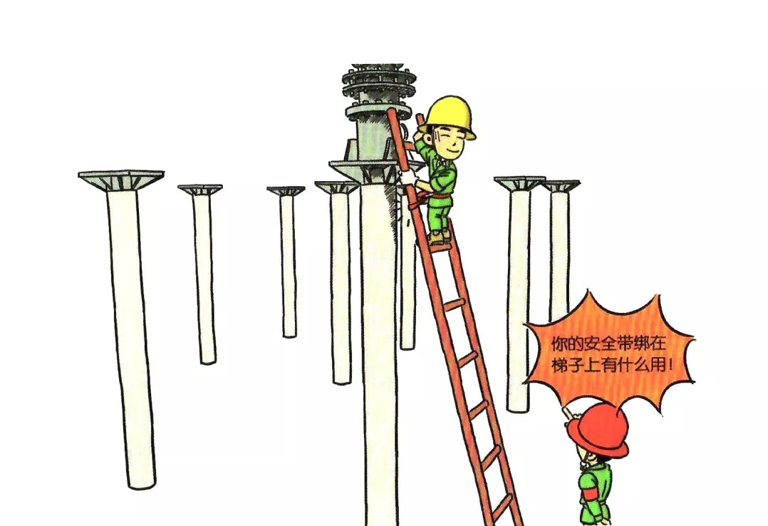 5.安全带挂在移动或不牢固物件上或低挂高用