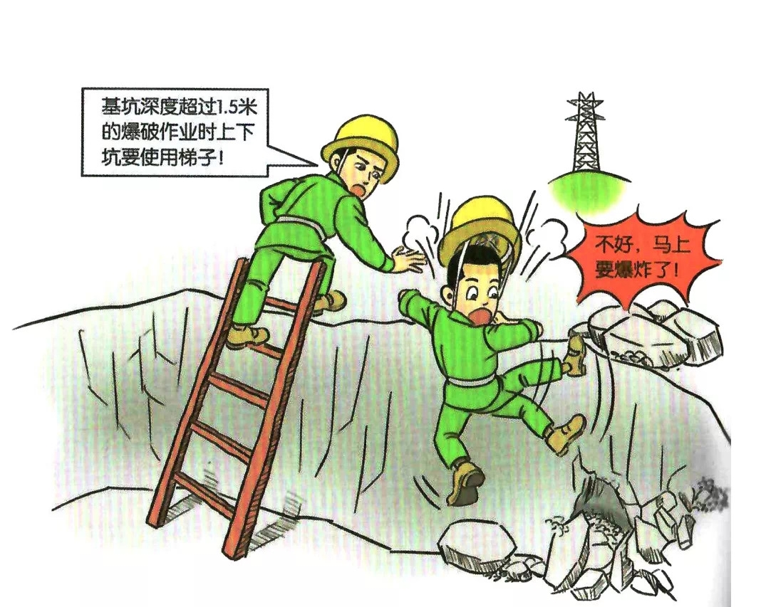 33.基坑深度超过1.5米时爆破作业上下坑未使用梯子