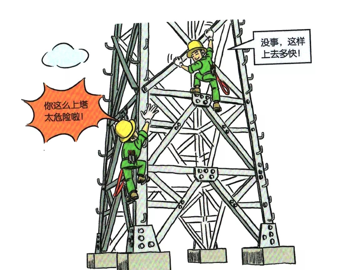 41.高处作业人员沿塔身构件上下铁塔