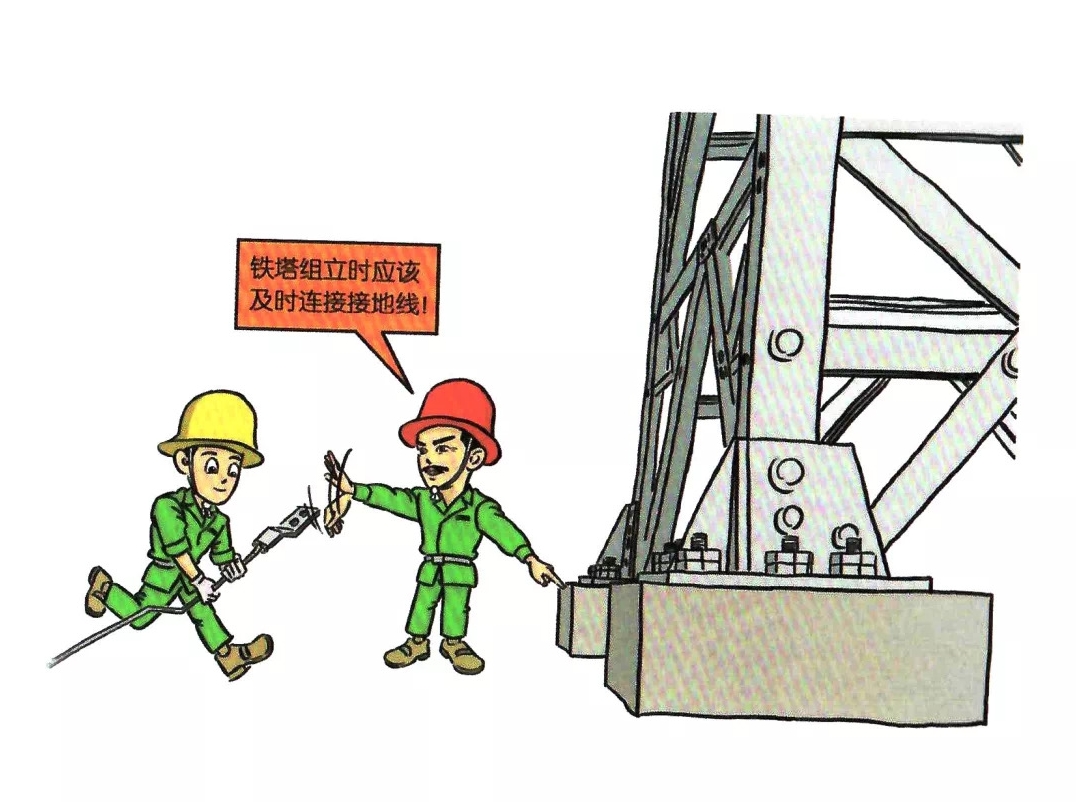 42.铁塔组立时未及时连接接地线