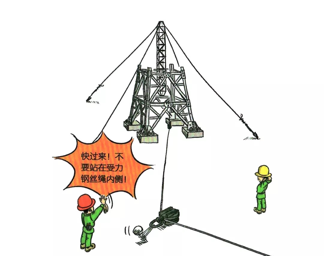 43.受力钢丝绳内侧有人