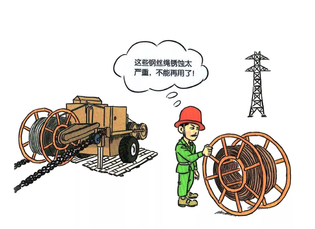 46.牵引绳使用严重磨损、变形、锈蚀和受过火烧的钢丝绳
