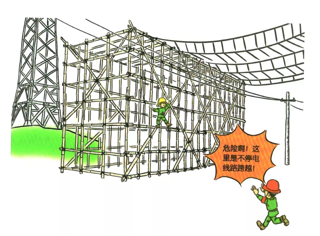48.跨越不停电线路时,作业人员在跨越架内侧攀爬或从封顶架上通过