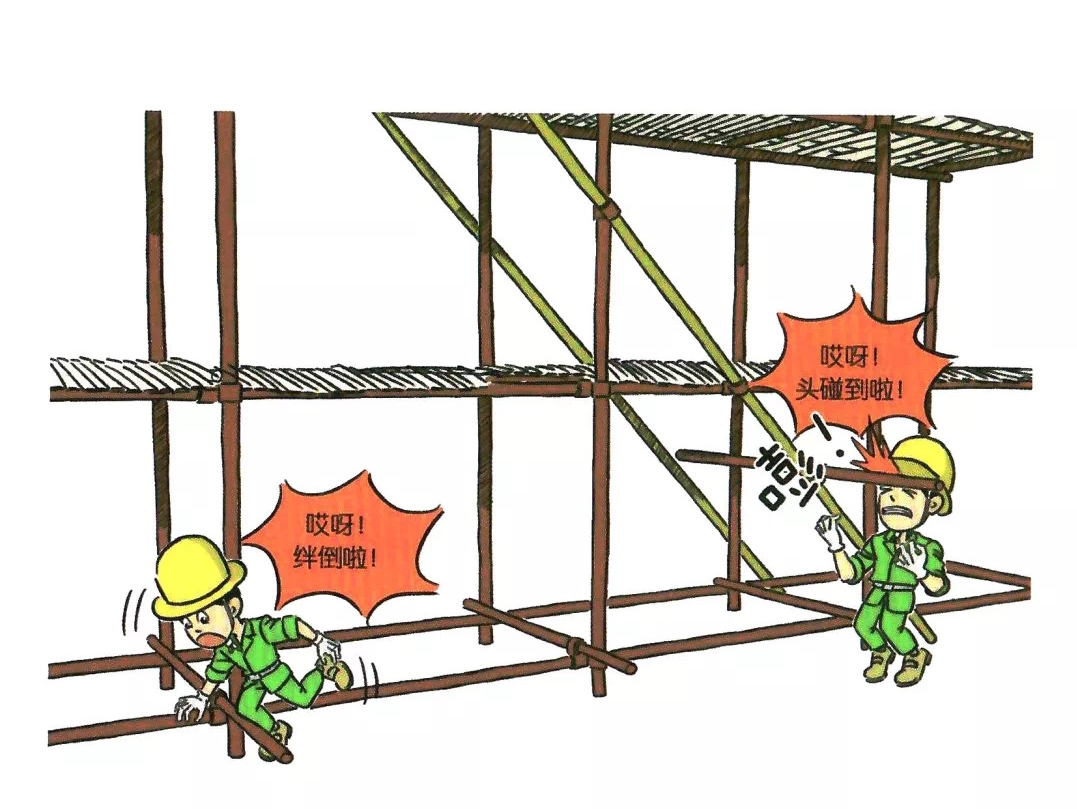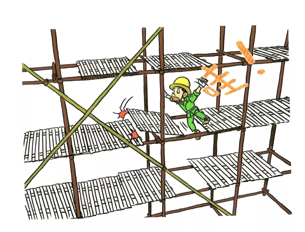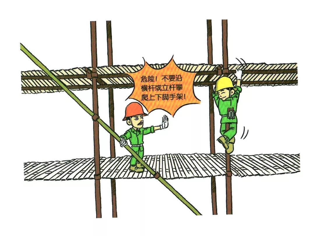 55.沿横杆或立杆攀爬上下脚手架