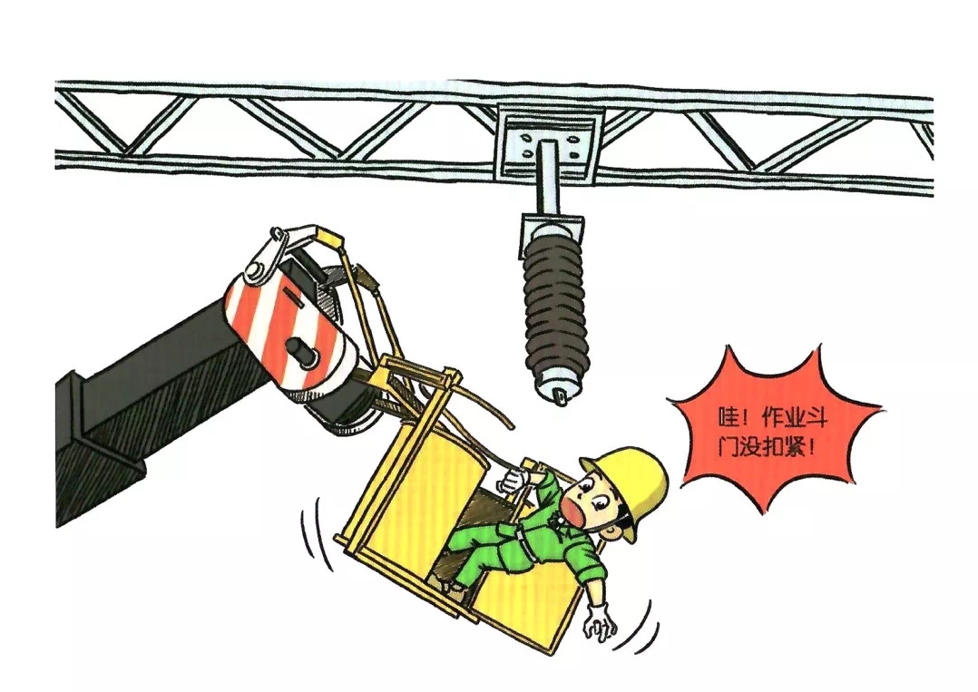 59.使用高架车斗作业时,作业斗门未扣紧或保险装置未锁紧